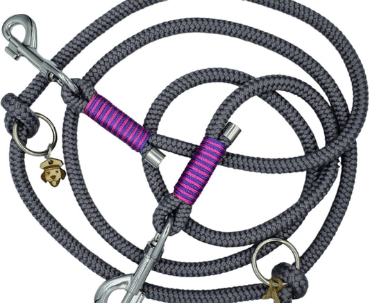 HANDMADE TRAINING DOG LEASH GREY - PURPLE (220cm)