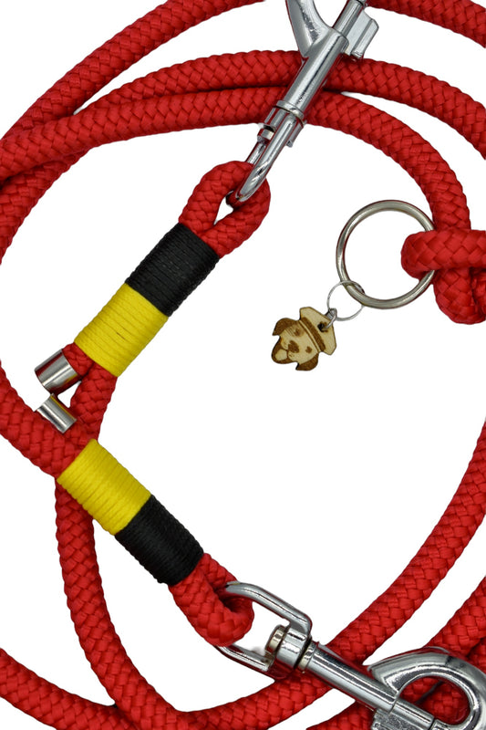 HANDMADE TRAINING DOG LEASH RED - YELLOW/BLACK (220cm)