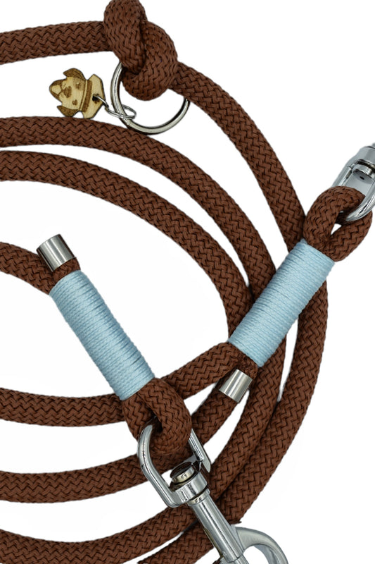 HANDMADE TRAINING DOG LEASH BROWN - LIGHT BLUE (220cm)