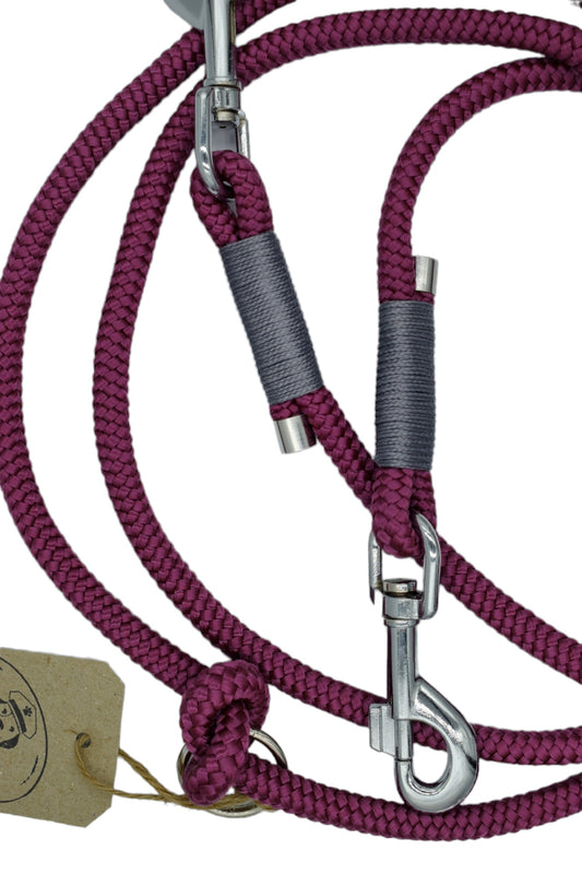 HANDMADE TRAINING DOG LEASH DARK PURPLE - GREY (220cm)