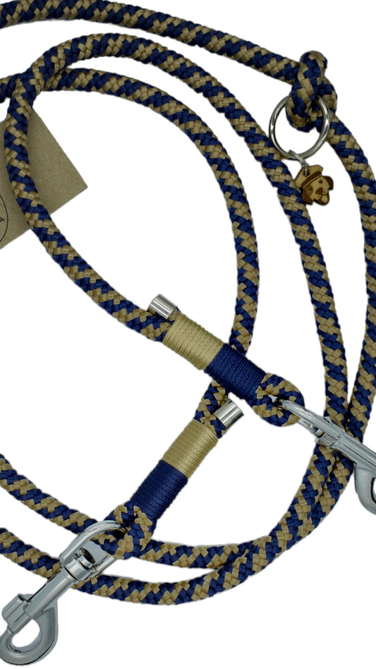 HANDMADE TRAINING DOG LEASH BLUE - BEIGE (220cm)
