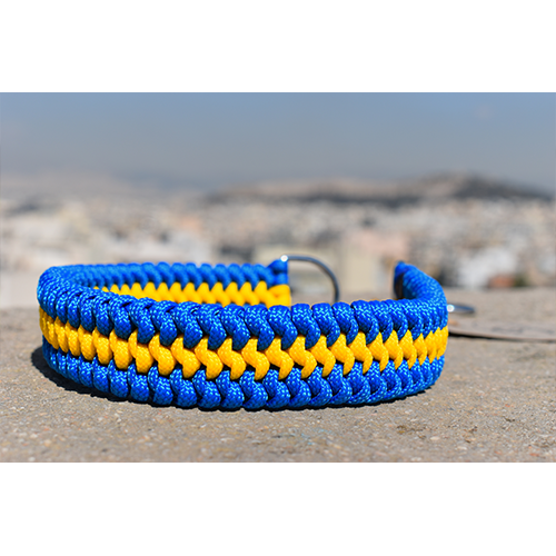 HANDMADE MARTINGALE DOG COLLAR MATED SNAKE BLUE - YELLOW (38 - 49cm)