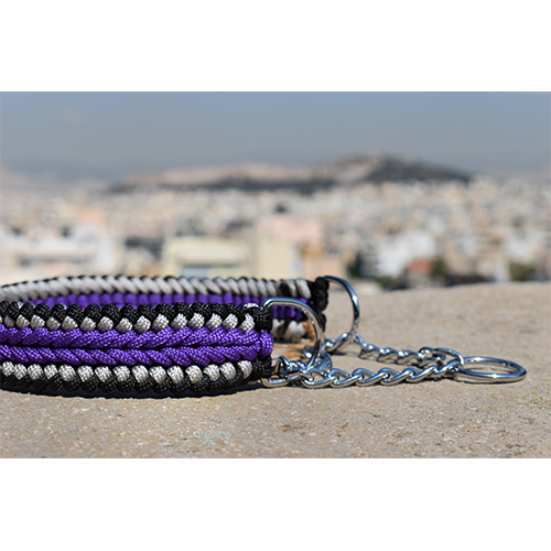 HANDMADE MARTINGALE DOG COLLAR ENDLESS FALLS PURPLE - BLACK - GREY (38 - 49cm)