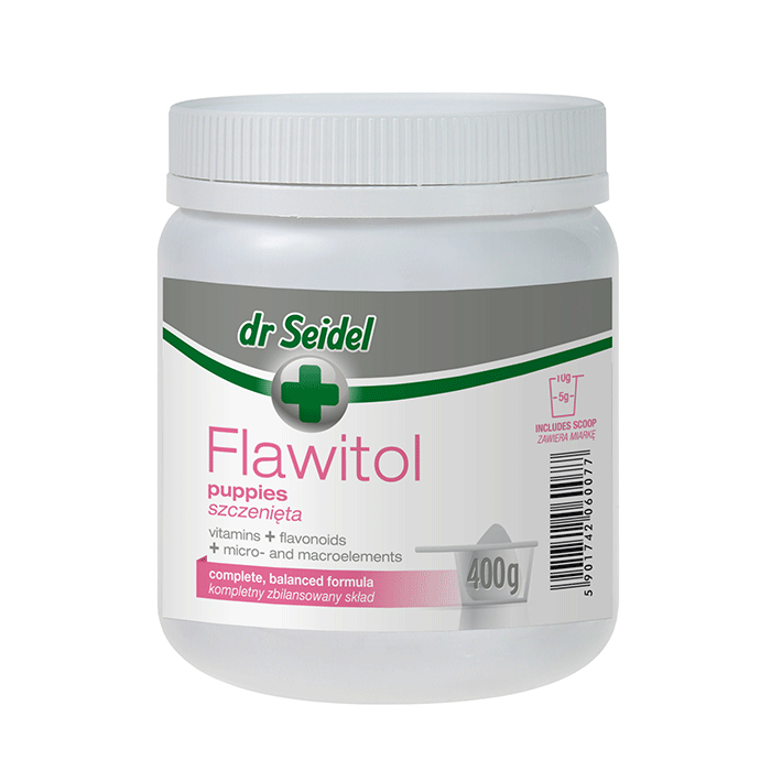 Συμπλήρωμα διατροφής σε σκόνη με συστατικά αποκλειστικά για κουτάβια σε ανάπτυξη. Χάρη στα φλαβονοειδή, τα κουτάβια προστατεύονται από τις επιβλαβείς ελεύθερες ρίζες. Η τακτική εφαρμογή εξασφαλίζει τη σωστή ανάπτυξη όλων των οργάνων του σώματος , οδηγεί στη μακροζωία και την καλύτερη υγεία όταν ενηλικιωθούν. Η περιεκτικότητα σε ενεργά φλαβονοειδή βελτιώνει την ανταπόκριση του ανοσοποιητικού σε πολλές ασθένειες (συμπεριλαμβανομένου καρκίνου) και καθυστερεί τη γήρανση. Προτείνεται για καθημερινή χρήση σε κουτάβια μικρής και μεσαίας ράτσας και για θηλυκά σκυλιά κατά τη διάρκεια της εγκυμοσύνης και εμμήνου ρήσης.